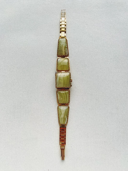 Gold - 1970s Green Onyx Gemstone Watch